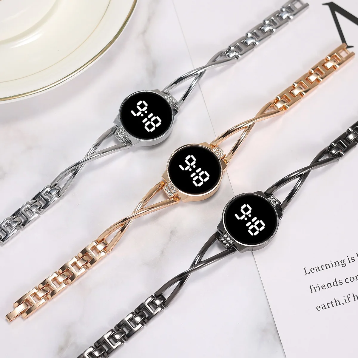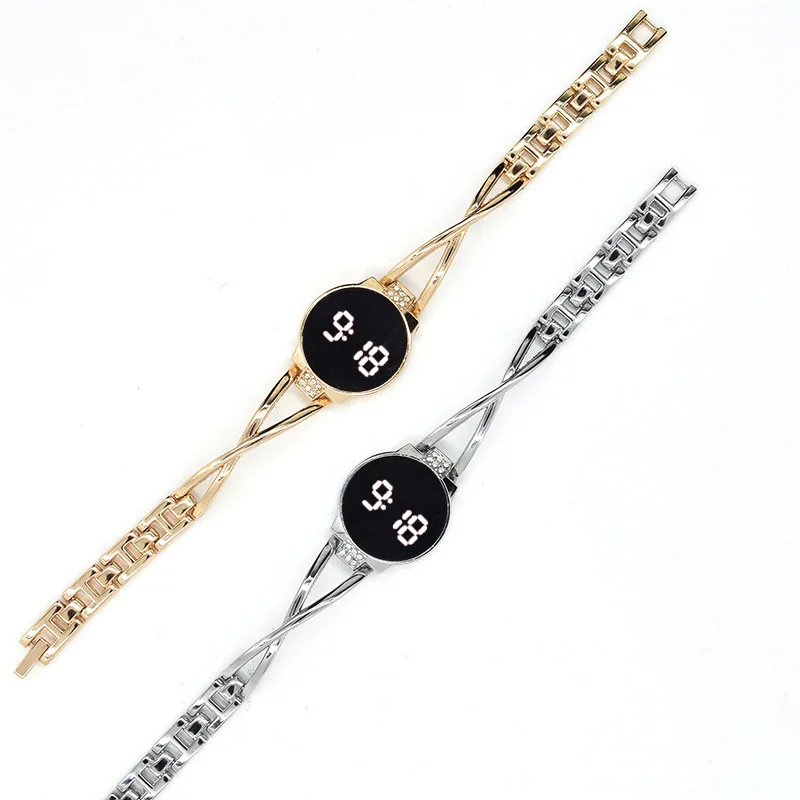 MAYZHISU Fashion LED Watch for Women Touch Screen Ladies Wristwatch Digital Clock Steel Band Electronic Female Bracelet Watch
